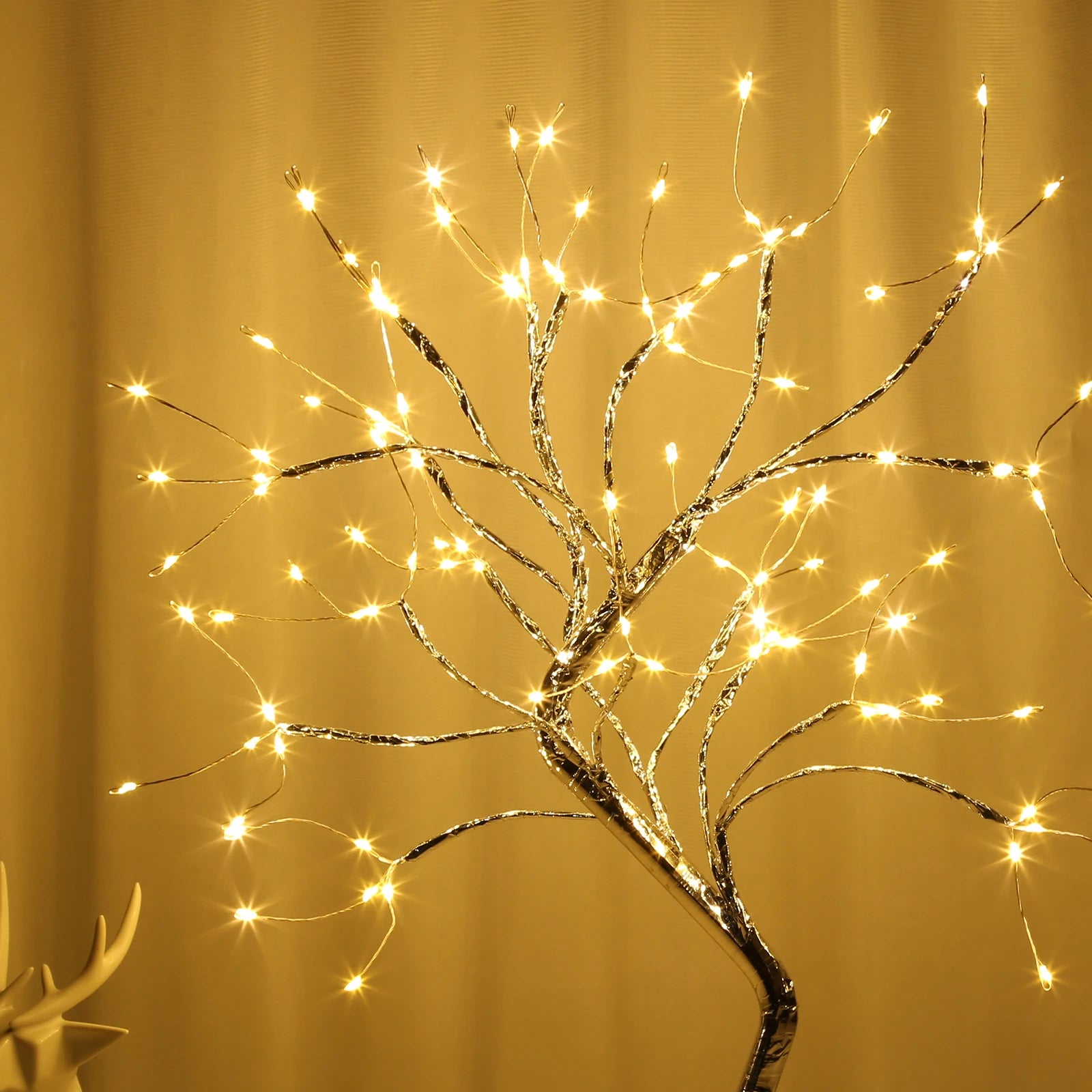 - 108 LED beads on a hand‑wrapped copper wire bonsai tree, about 50 cm tall (20 inches) with a 12 cm base (4.72").