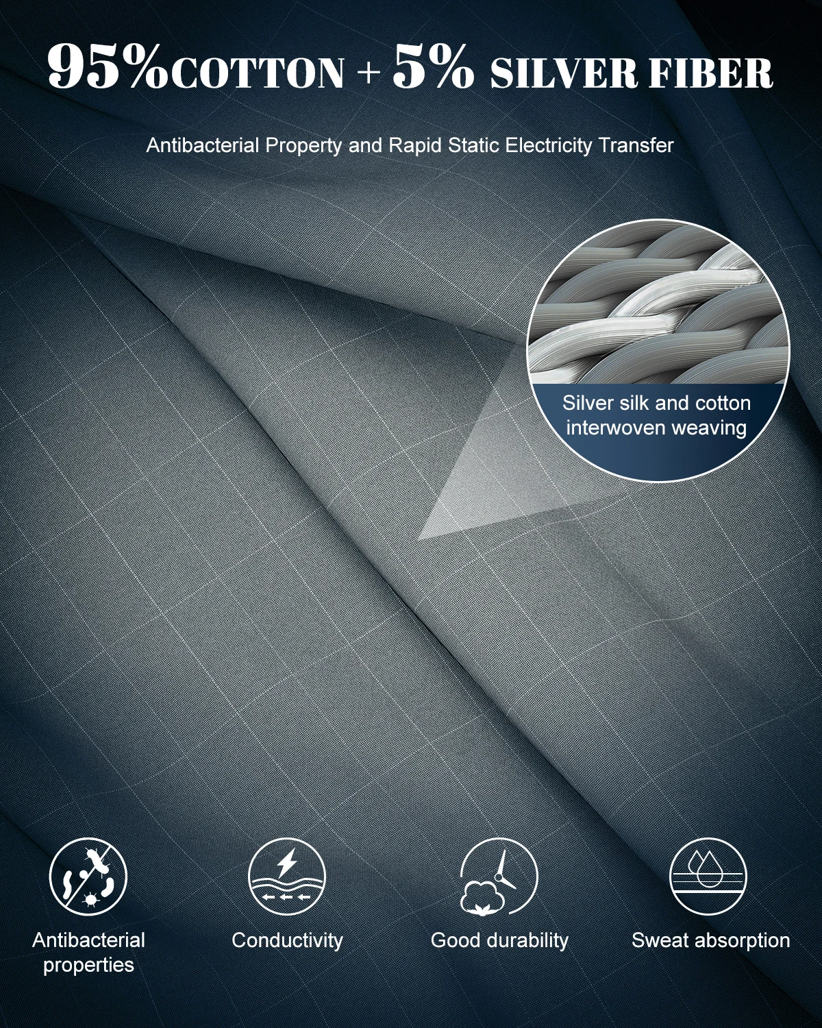 Made in Mainland China with careful craftsmanship from Guangdong, this fitted sheet features a tatting-inspired weave that adds subtle texture and durability. The fabric is 100% cotton, delivering a soft, breathable feel that keeps you comfortable across seasons. The integrated silver fiber provides a conductive path for grounding, offering a distinctive sleep experience that sets it apart from ordinary sheets.