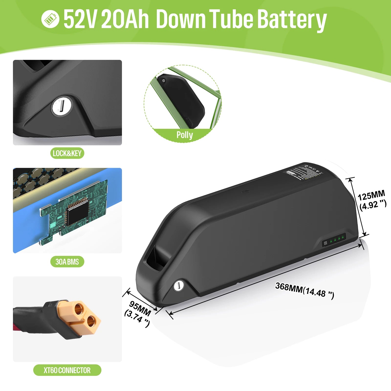 - Voltage configurations: 52V, 48V, and 36V (nominal)