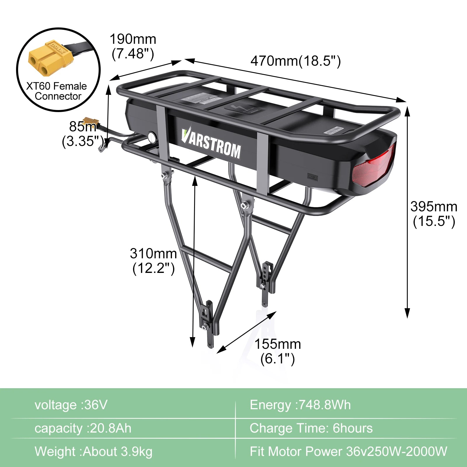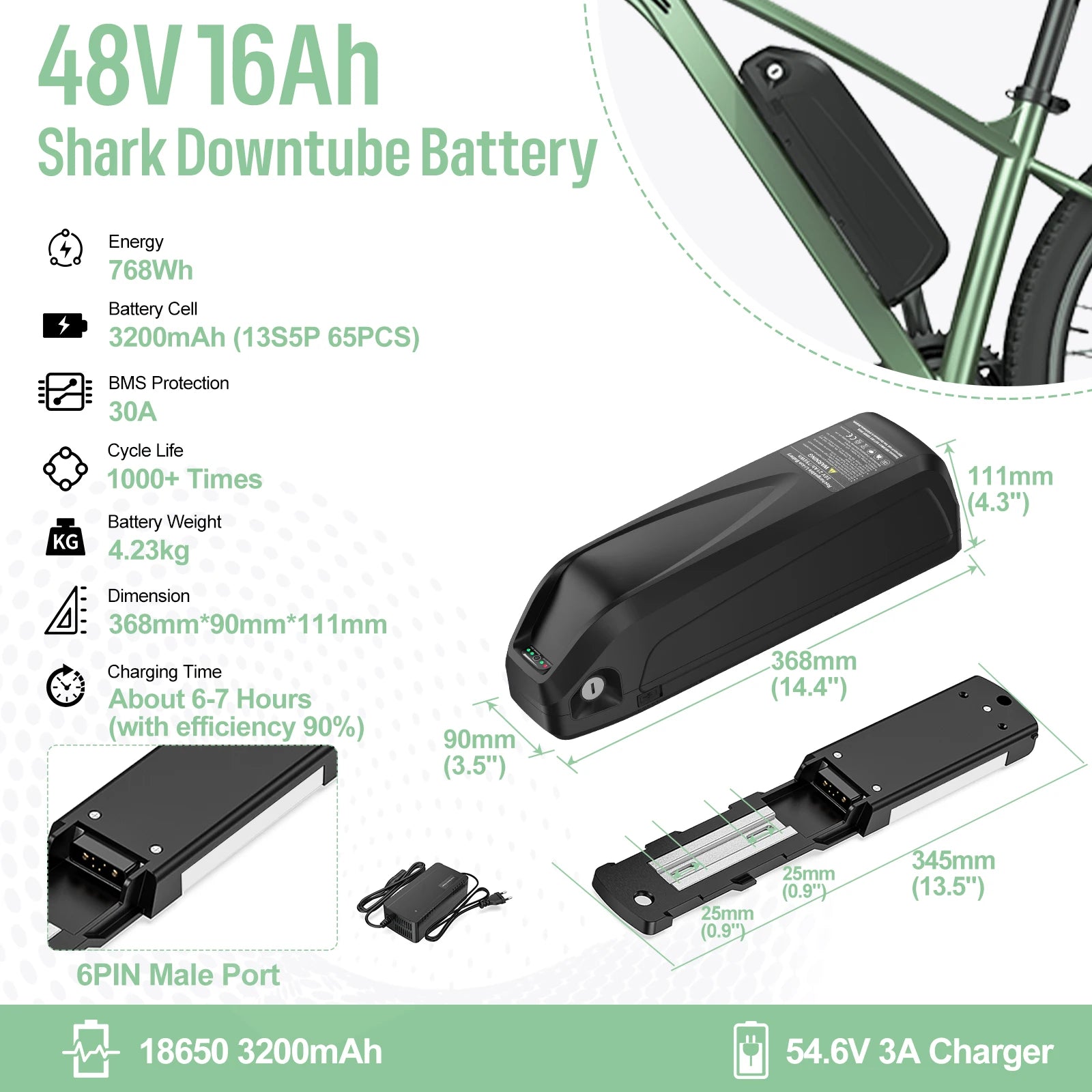 - Charger: 54.6V 4A; Discharge: XT60 connector