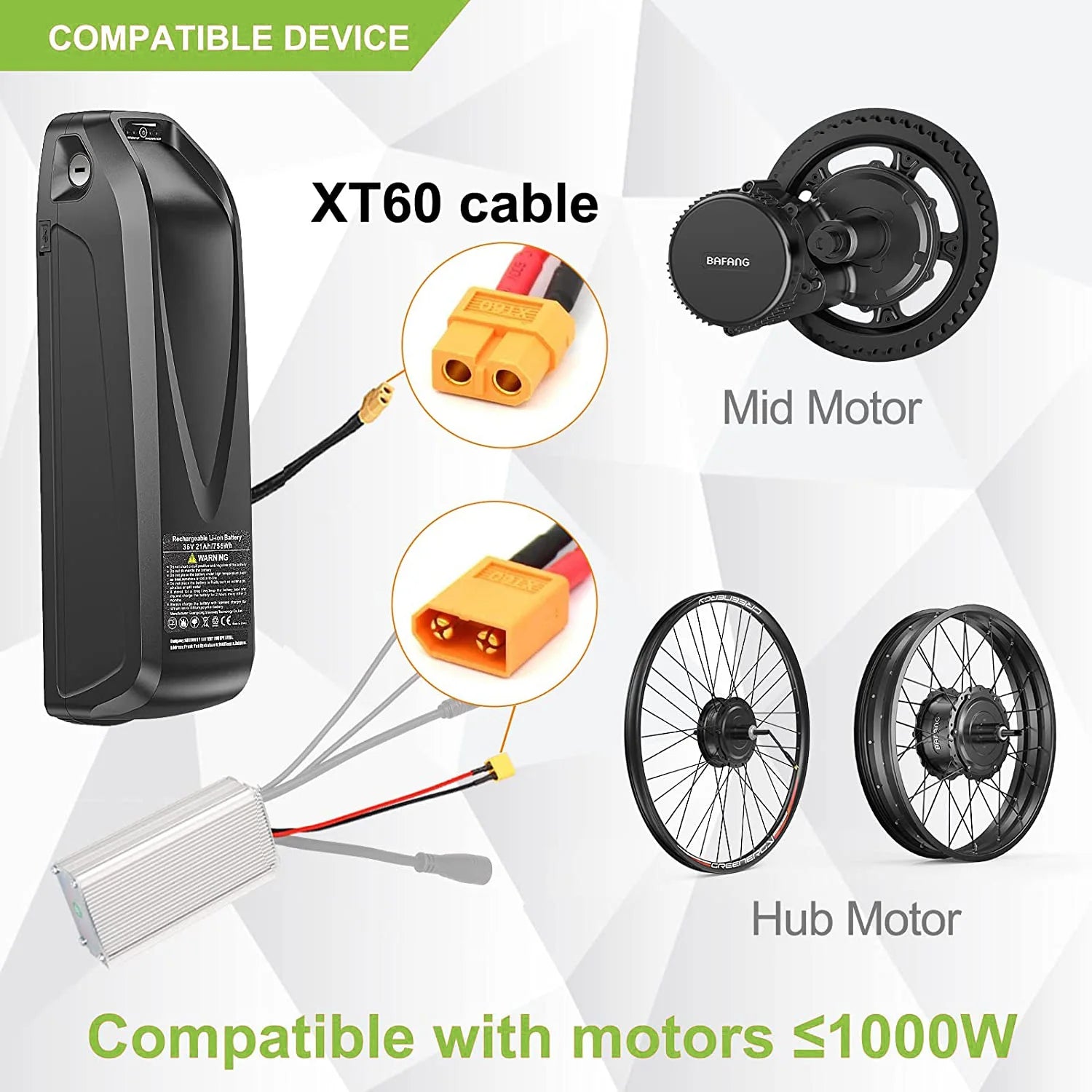 - Compatible with 500W–1000W e-bike motors, ideal for Bafang and Tongsheng installations