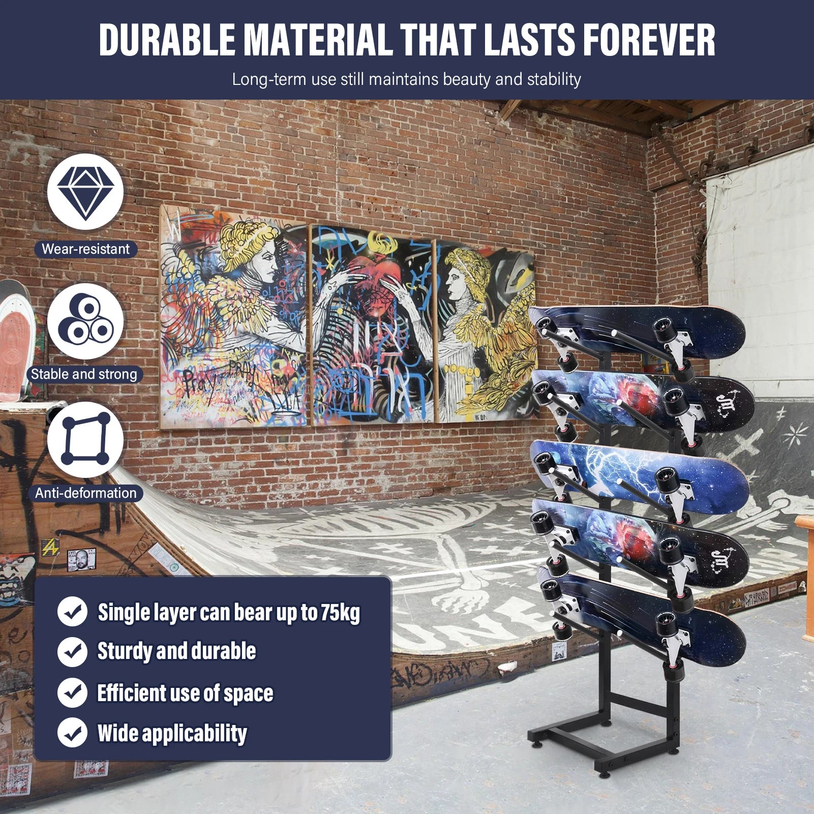 5 Tier Metal Skateboard Rack Freestanding Organizer For Home Gym